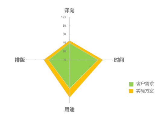 服務性需求,即通過前期了解,明確客戶的項目背景,項目所在國,行業(yè),以及該項目的階段等。通過上述的信息對項目在時間、流程等節(jié)點上進行分析規(guī)劃,引導客戶的需求落地,對項目進行合理的生產計劃安排。同時,對數(shù)量和費用進行預估,讓客戶對產品結果所帶來的經濟成本有心理預期。針對特殊的項目,更重要的是預告項目的風險,避免因為不可抗的因素導致我們的產品遠低于客戶預期需求,為客戶提供咨詢式的翻譯服務產品及項目解決方案。